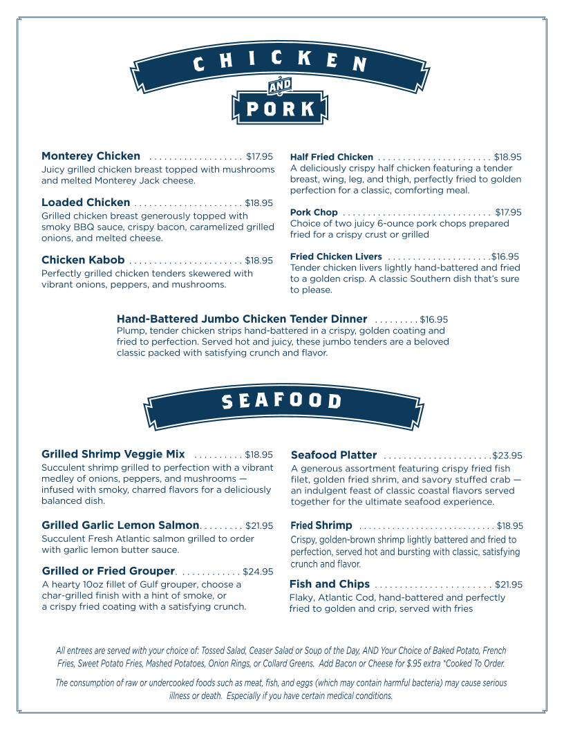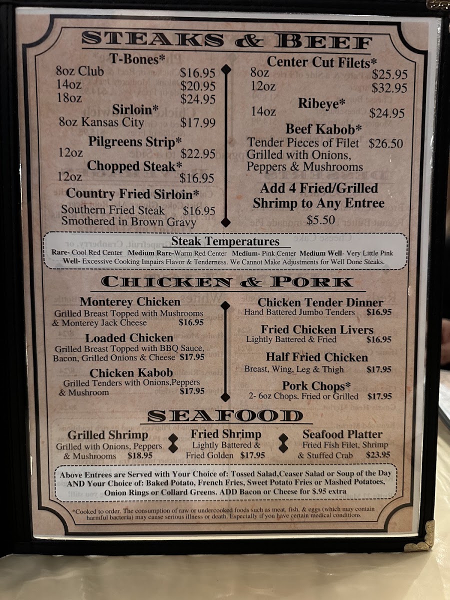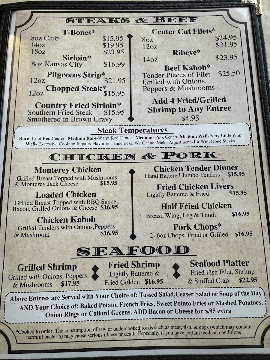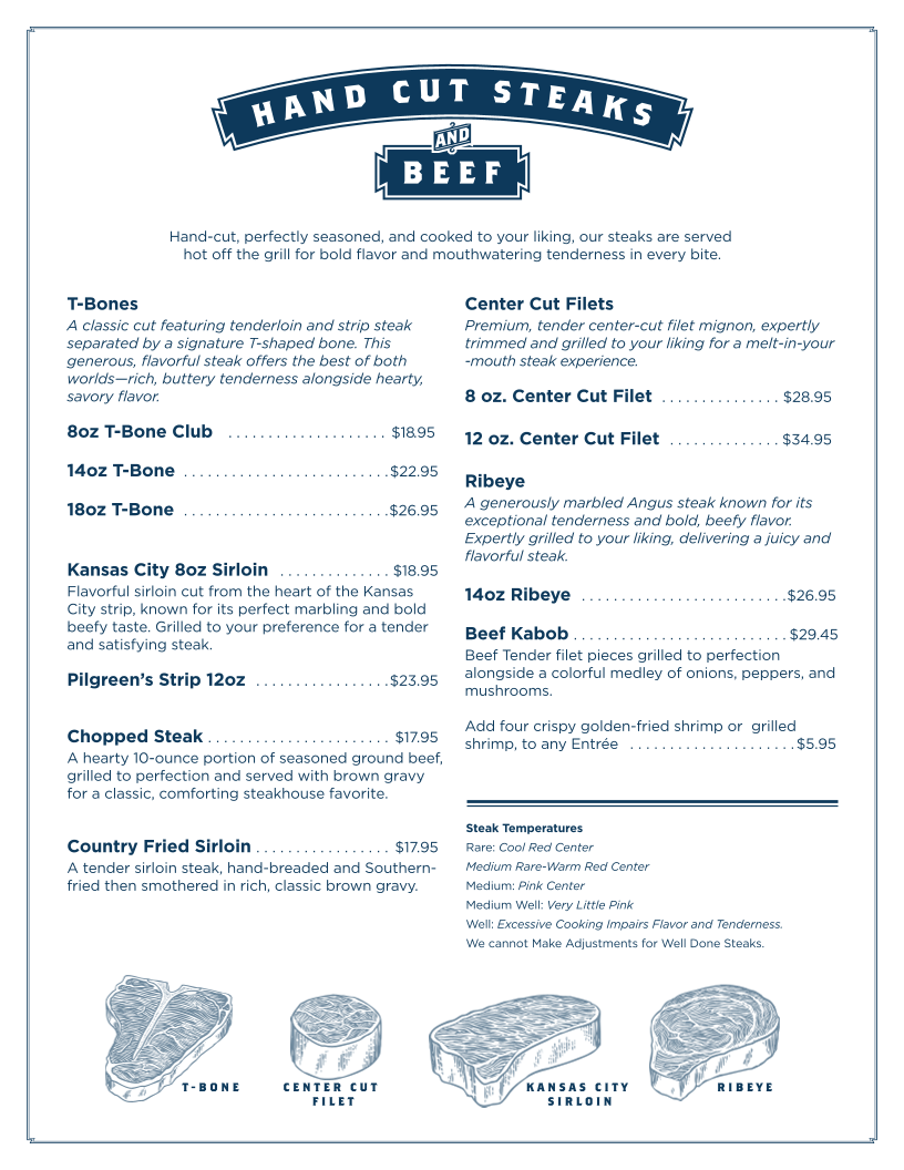 At Pilgreen's Steakhouse and Bar, the menu offers a classic American dining experience centered around hearty, satisfying dishes and traditional flavors. The selection focuses on hand-cut steaks and comforting sides, making it a great spot for everything from casual dinners to special gatherings in their welcoming banquet hall.
